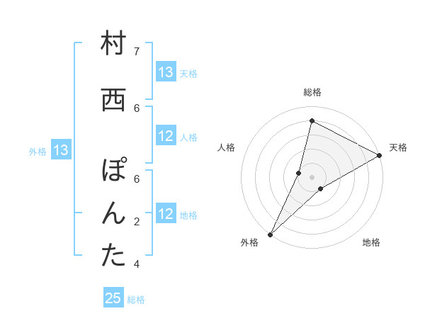 村西 ぽんたさんの天格は13画の5点!