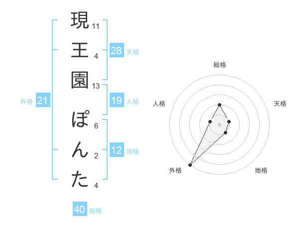 現王園 ぽんたさんを姓名の画数から五運を鑑定