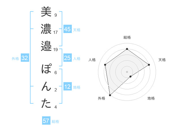 美濃邉 ぽんたさんを姓名の画数から五運を鑑定