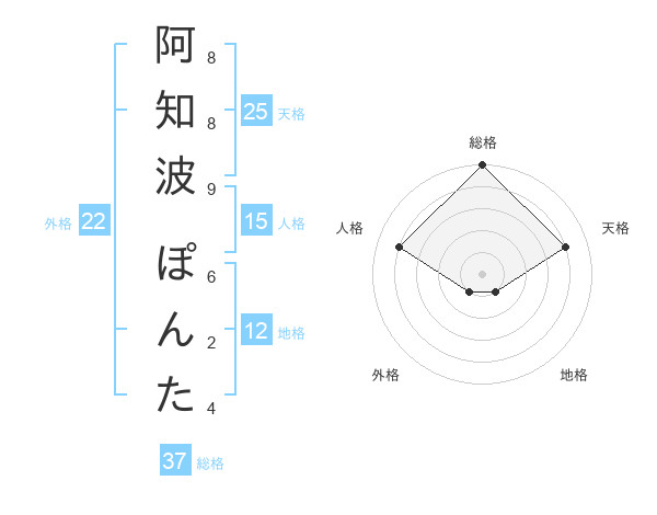阿知波 ぽんたさんを姓名の画数から五運を鑑定