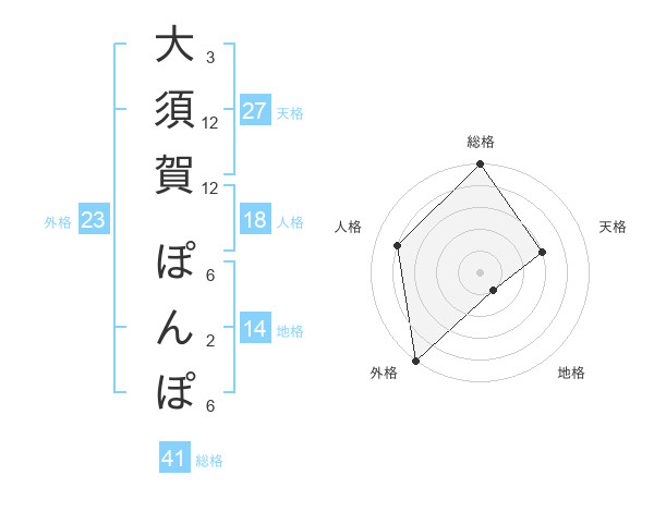 大須賀 ぽんぽさんの外格は23画の5点!