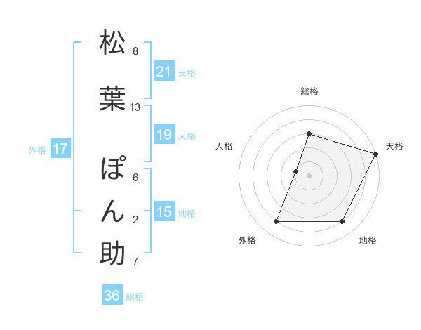 松葉 ぽん助さんを姓名の画数から五運を鑑定