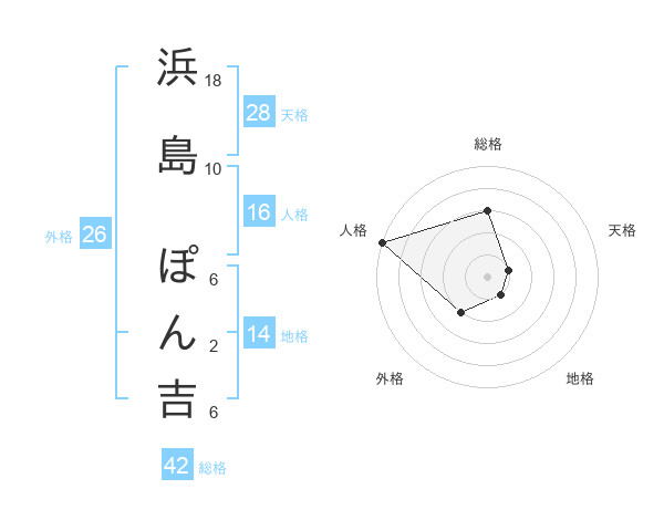 浜島 ぽん吉さんを姓名の画数から五運を鑑定