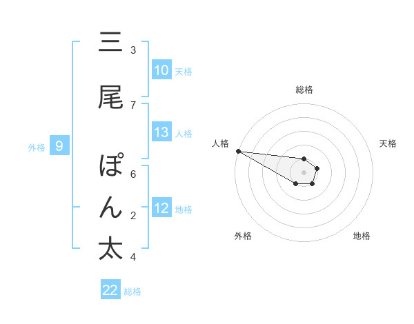 三尾 ぽん太さんを姓名の画数から五運を鑑定