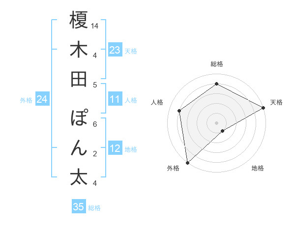 本サイトの鑑定結果の正当性は保証しません。鑑定結果は参考程度にお読みください。実際の名づけにご利用される場合は、姓名判断についてご自身でよくお調べください。