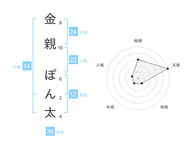 金親 ぽん太さんの天格は24画の5点!