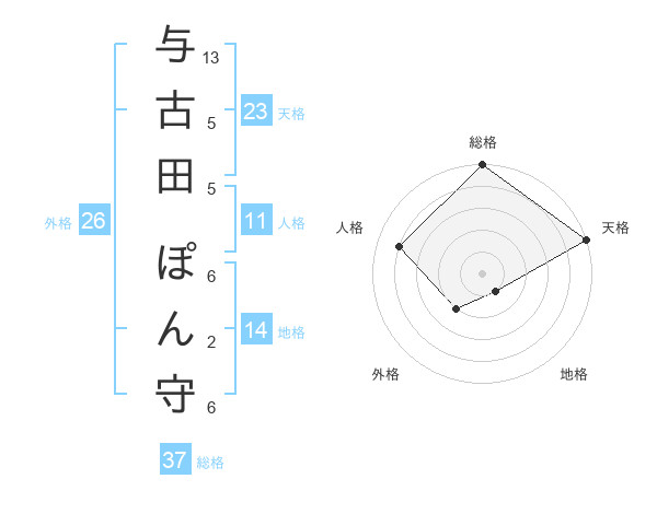 与古田 ぽん守さんの総格は37画の5点!