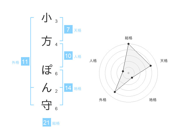 小方 ぽん守さんを姓名の画数から五運を鑑定