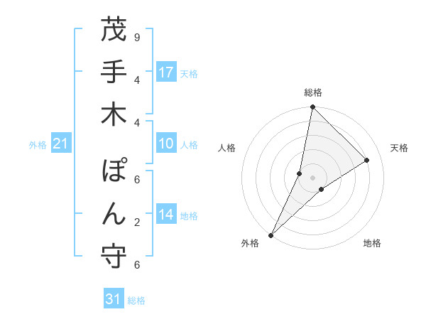 茂手木 ぽん守さんを姓名の画数から五運を鑑定