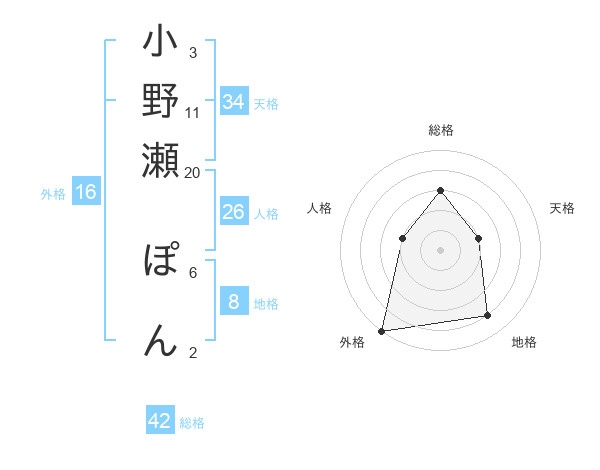 小野瀬 ぽんさんの総格は42画の3点