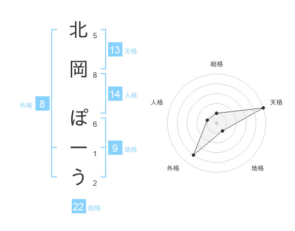 北岡 ぽーうさんを姓名の画数から五運を鑑定