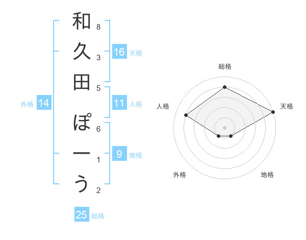 和久田 ぽーうさんを姓名の画数から五運を鑑定