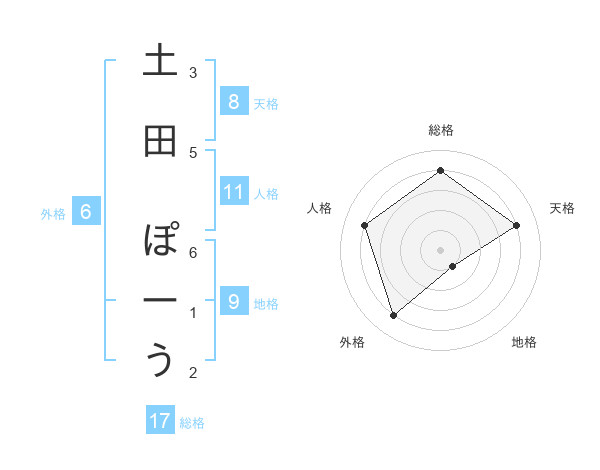 土田 ぽーうさんの天格は8画の4点!