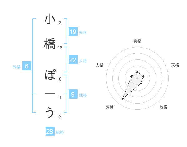 小橋 ぽーうさんを姓名の画数から五運を鑑定