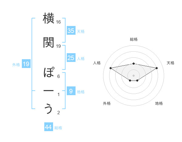 横関 ぽーうさんを姓名の画数から五運を鑑定