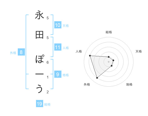 永田 ぽーうさんを姓名の画数から五運を鑑定