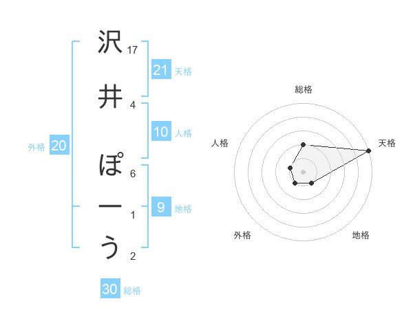 沢井 ぽーうさんを姓名の画数から五運を鑑定