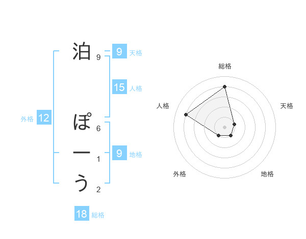 泊 ぽーうさんを姓名の画数から五運を鑑定