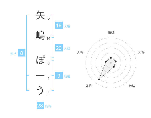 矢嶋 ぽーうさんの総格は28画の1点!