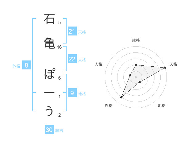石亀 ぽーうさんを姓名の画数から五運を鑑定
