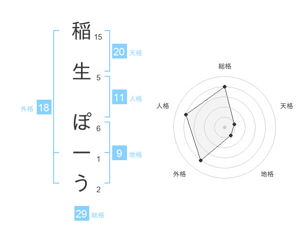 稲生 ぽーうさんを姓名の画数から五運を鑑定