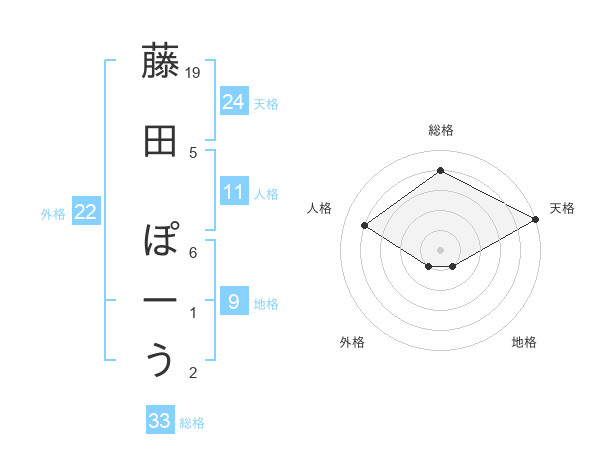 藤田 ぽーうさんを姓名の画数から五運を鑑定