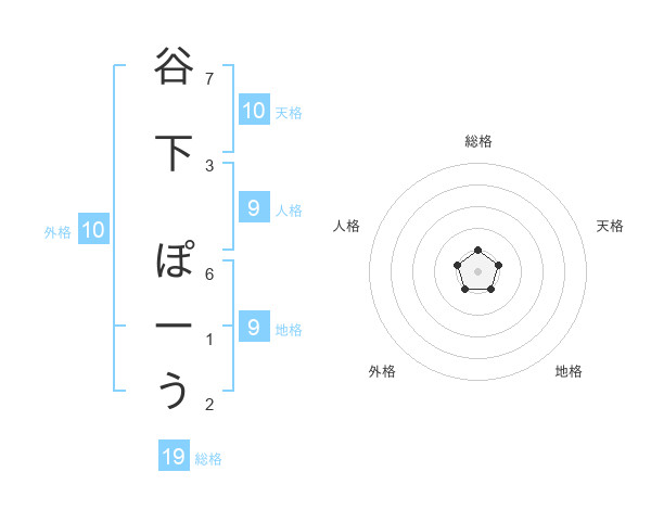 谷下 ぽーうさんを姓名の画数から五運を鑑定