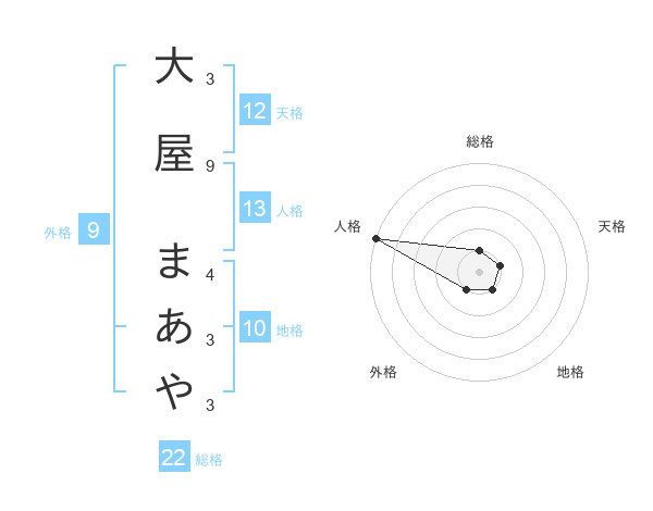 大屋 まあやさんを姓名の画数から五運を鑑定