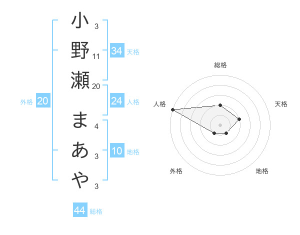 小野瀬 まあやさんの総格は44画の2点!