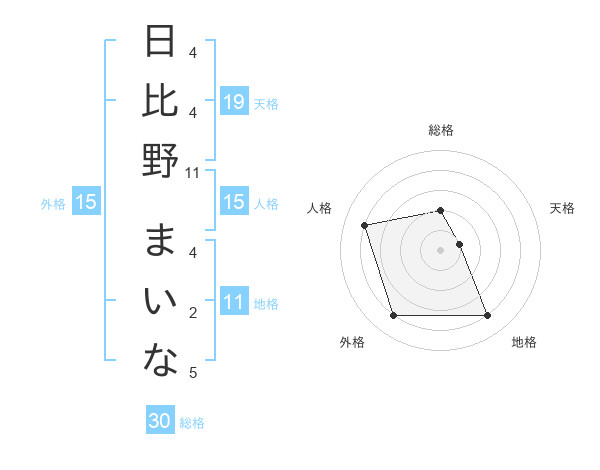 日比野 まいなさんを姓名の画数から五運を鑑定