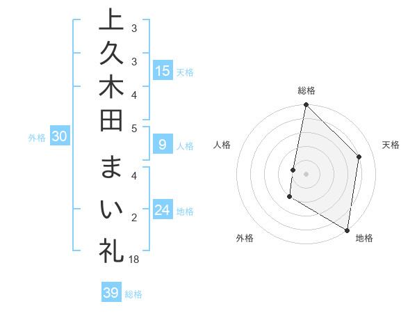 上久木田 まい礼さんを姓名の画数から五運を鑑定