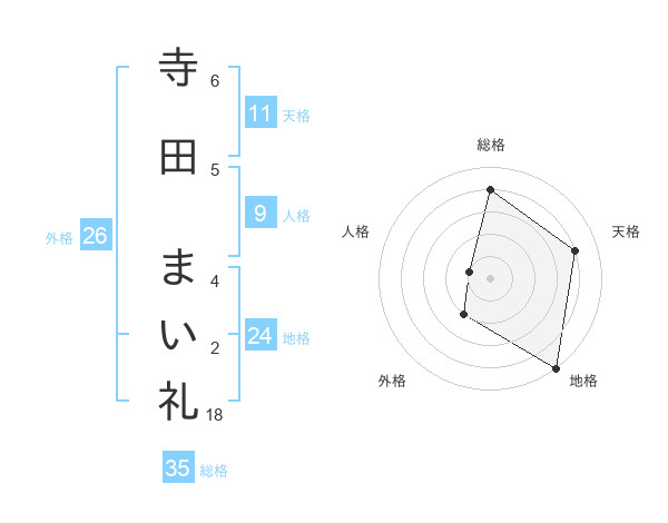 寺田 まい礼さんを姓名の画数から五運を鑑定