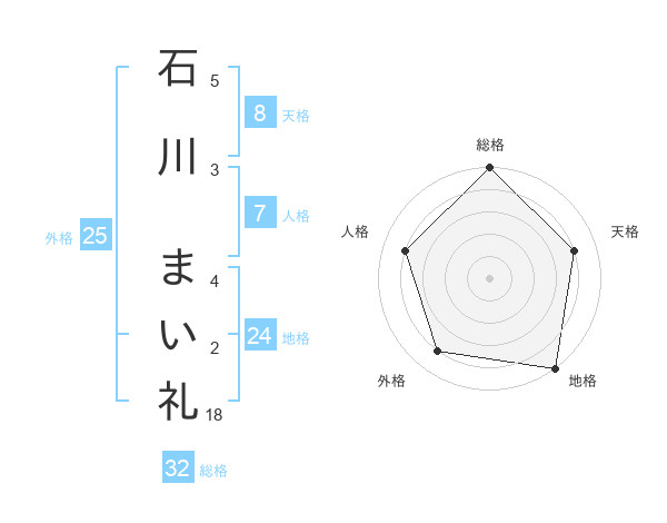 石川 まい礼さんの天格は8画の4点