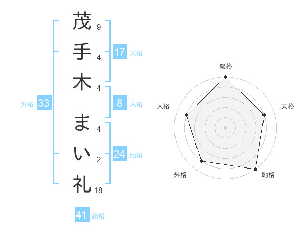 茂手木 まい礼さんの総格は41画の5点!