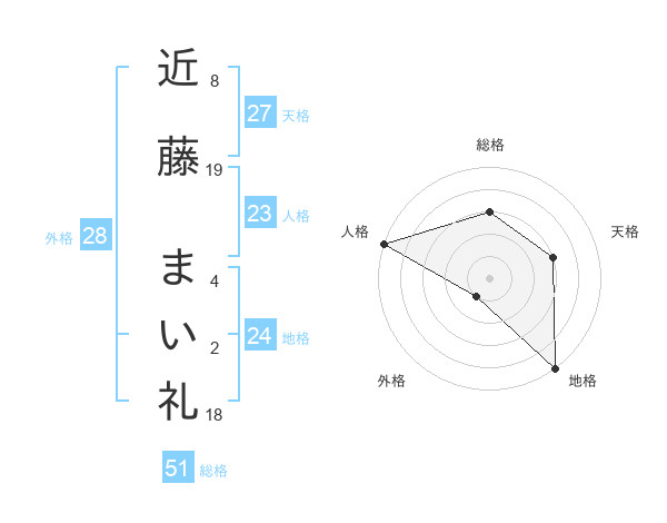 近藤 まい礼さんの総格は51画の3点!