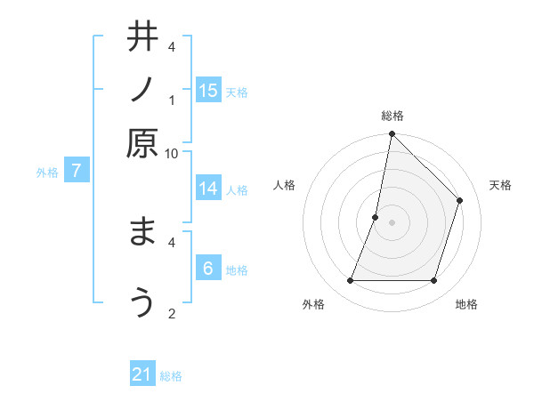 井ノ原 まうさんを姓名の画数から五運を鑑定