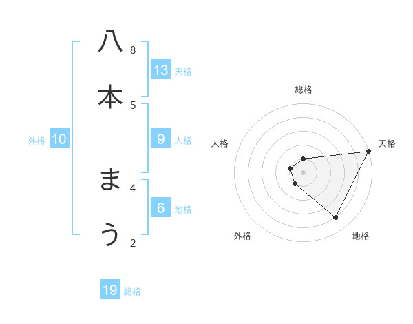 八本 まうさんの天格は13画の5点!