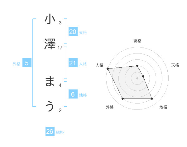 小澤 まうさんの総格は26画の2点!