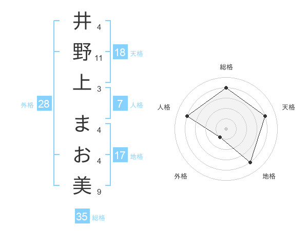 井野上 まお美さんを姓名の画数から五運を鑑定