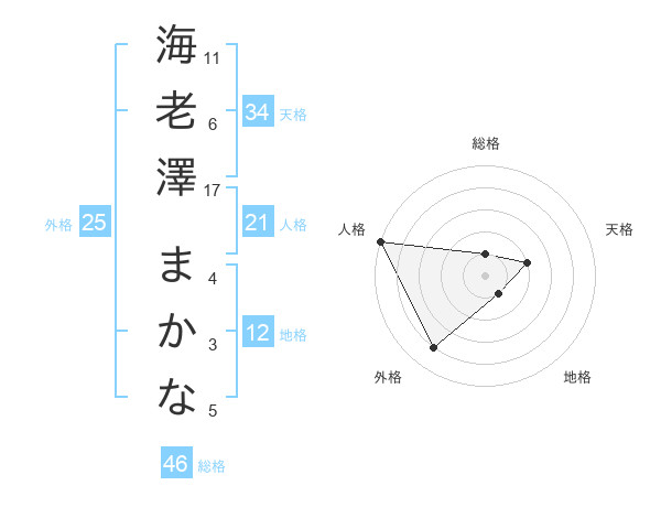 海老澤 まかなさんを姓名の画数から五運を鑑定