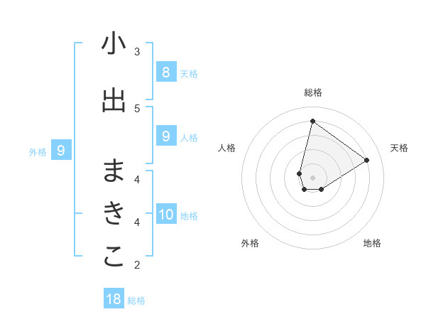 小出 まきこさんの天格は8画の4点!