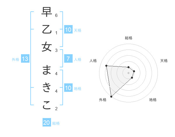 早乙女 まきこさんを姓名の画数から五運を鑑定