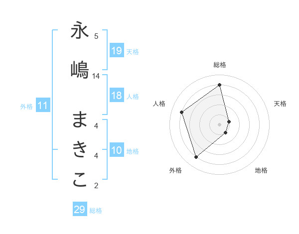 永嶋 まきこさんの総格は29画の4点!