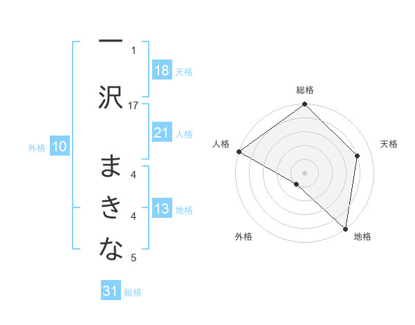 一沢 まきなさんの総格は31画の5点!