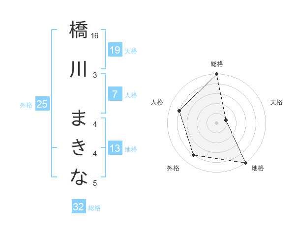 橋川 まきなさんの地格は13画の5点!