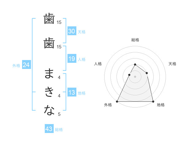 歯歯 まきなさんの総格は43画の2点!
