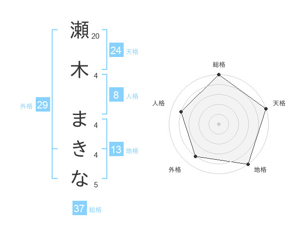 瀬木 まきなさんを姓名の画数から五運を鑑定