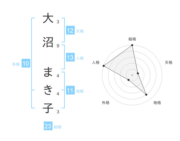 大沼 まき子さんの総格は23画の5点!