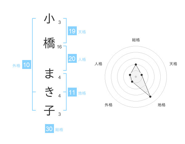 小橋 まき子さんを姓名の画数から五運を鑑定
