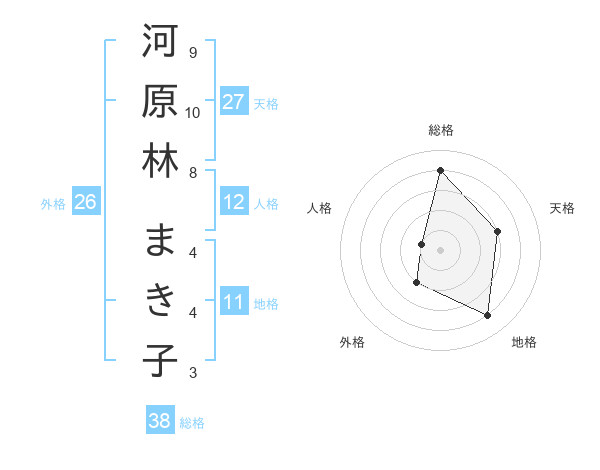 河原林 まき子さんを姓名の画数から五運を鑑定